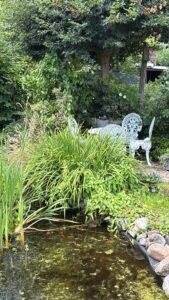 Met een kopje thee of koffie aan de vijver lekker plaatsnemen op uw terrasje, – echt een fijne plek om te ontspannen. Geniet van vogelgezang en de prachtige zonsopkomst, of vermaak u bij een heerlijk borrelplank op het terrasje.