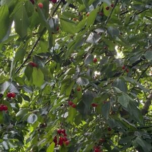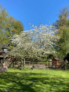 Der alte Kirschbaum steht im Hühnerstall. Die leckersten Kirschen sind natürlich die, die du selbst pflückst. Das ist ab Mitte Juni möglich. Du bekommst ein Körbchen mit, und wenn es voll ist, kannst du es bei uns gegen einen kleinen Preis abrechnen. Das wird ein Genuss!
