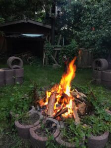 Die Feuerstelle auf dem hinteren Feld: